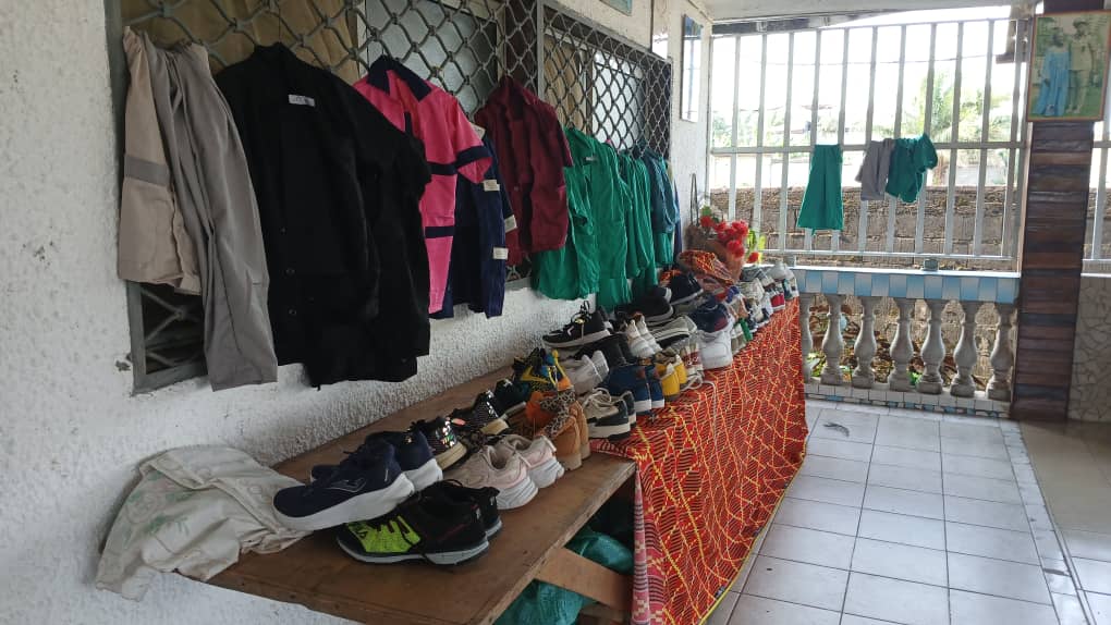 Für jedes Kind werden pro Schuljahr 350 € benötigt. Wir erstellen jährlich eine detaillierte Auflistung des benötigten Materials. Dies beinhaltet seit 2022 neben Schulmaterial, Schuhen und Schulkleidung auch ein medizinisches Hygieneset, das den vor Ort üblichen Krankheiten vorbeugen soll. Es trug dazu bei, dass alle Kinder im letzten Jahr gesund waren. Die Koordinatorin kauft in Kribi und Douala das Material ein und händigt es den Kindern zum Schuljahresbeginn aus. Zum Schuhkauf treffen sich alle auf dem Markt, um die Schuhe anzuprobieren.